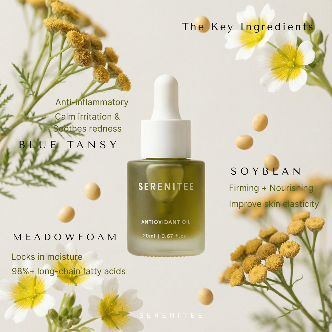 - The Calmer (Blue Tansy): Rich in Chamazulene to instantly cool inflammation and soothe redness.